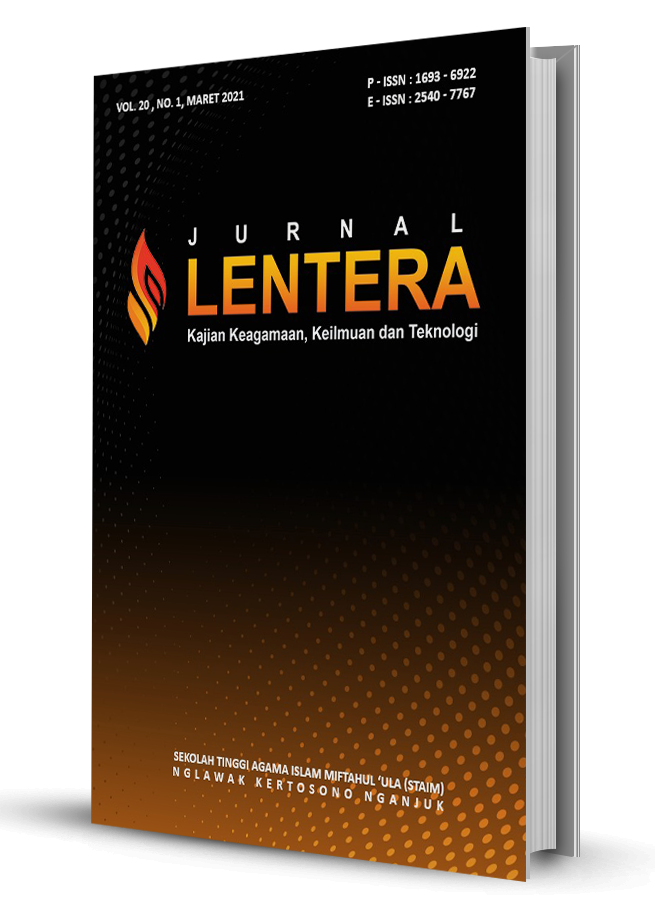 JURNAL LENTERA : Kajian Keagamaan, Keilmuan dan Teknologi, is an online journal (ISSN 2540-7767-Online) and (ISSN 1693-6922 - Print) jointly published by STAI Miftahul Ula Nganjuk. The mission of JURNAL LENTERA is to encourage scholarly research in religious, scientific and technological studies. The Journal provides a unique peer-reviewed forum to postgraduate students, scholars, professors, and researchers in various topics within the scope. The Journal welcomes research papers as well as review articles and conference reports. JURNAL LENTERA will be published in March and September annually. JURNAL LENTERA will publish empirical and theoretical papers (e.g. a critical review of research). The Journal has an international advisory board. The international perspective is also reflected by the journal’s trilingual approach: IJIT welcomes papers in English, Arabic and Indonesia.